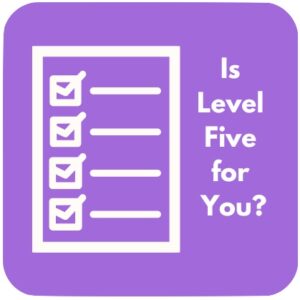 Do you need LEVEL FIVE? Current Status Not Enrolled Price Free Get Started Login to Enroll Level 5 See More Course Content Level 5 1 Quiz Expand Lesson Content Test Five