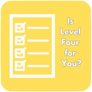 Do you need LEVEL FOUR? Current Status Not Enrolled Price Free Get Started Login to Enroll Level 4 See More Course Content Level 4 1 Quiz Expand Lesson Content Test Four